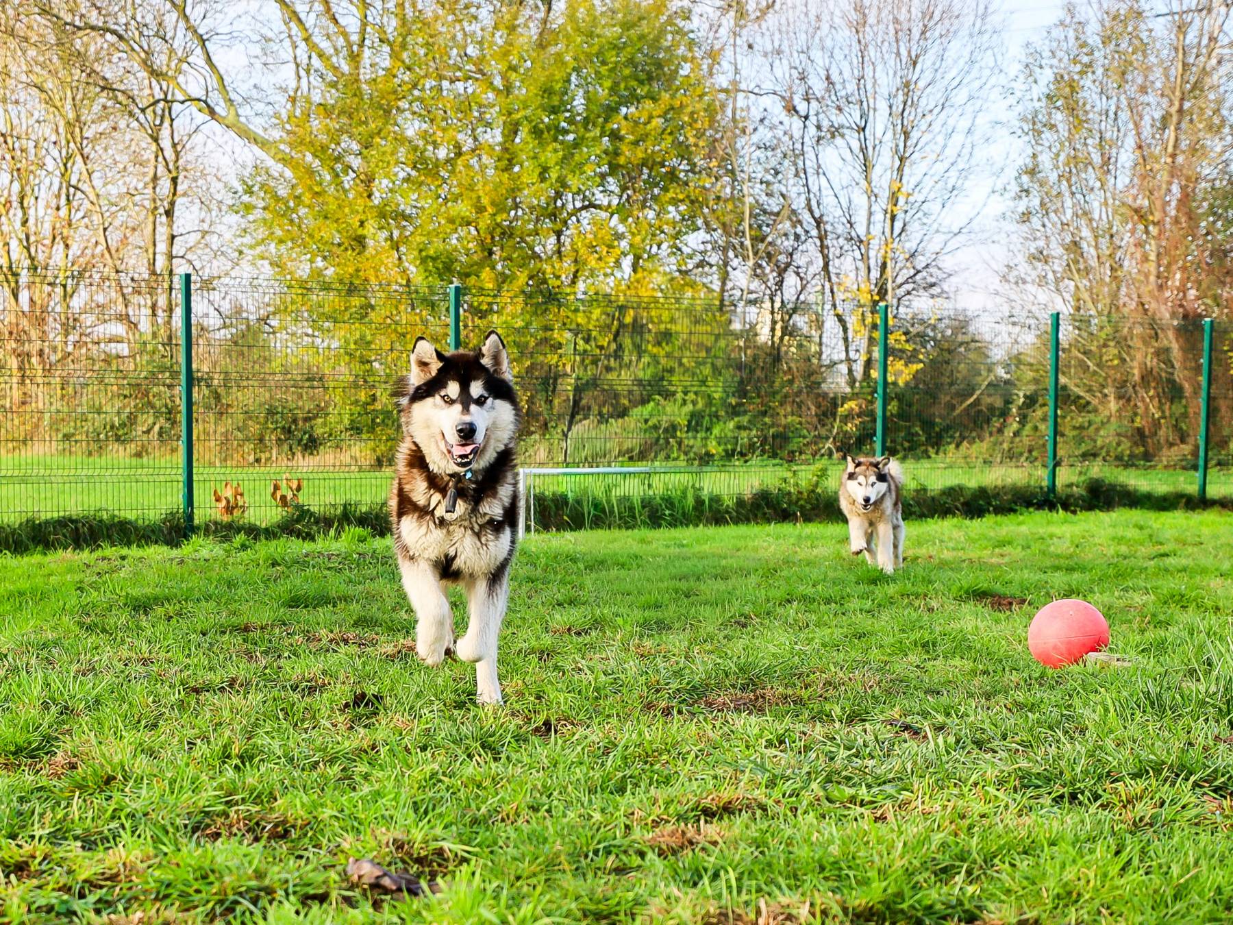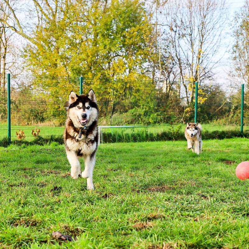Ook wandelen aan de leiband waren ze niet gewoon. Ze durven dan ook wel nog een beetje trekken maar valt mee. Wel verschieten ze nog gemakkelijk van drukte en geluiden op wandeling, hier is zeker nog wat socialisatie bij nodig. In de woning waren ook katten aanwezig, deze hebben ze wel soms kort gezien en reageerde ze wel oke op volgens de eigenaar maar er is nooit echt contact geweest.
