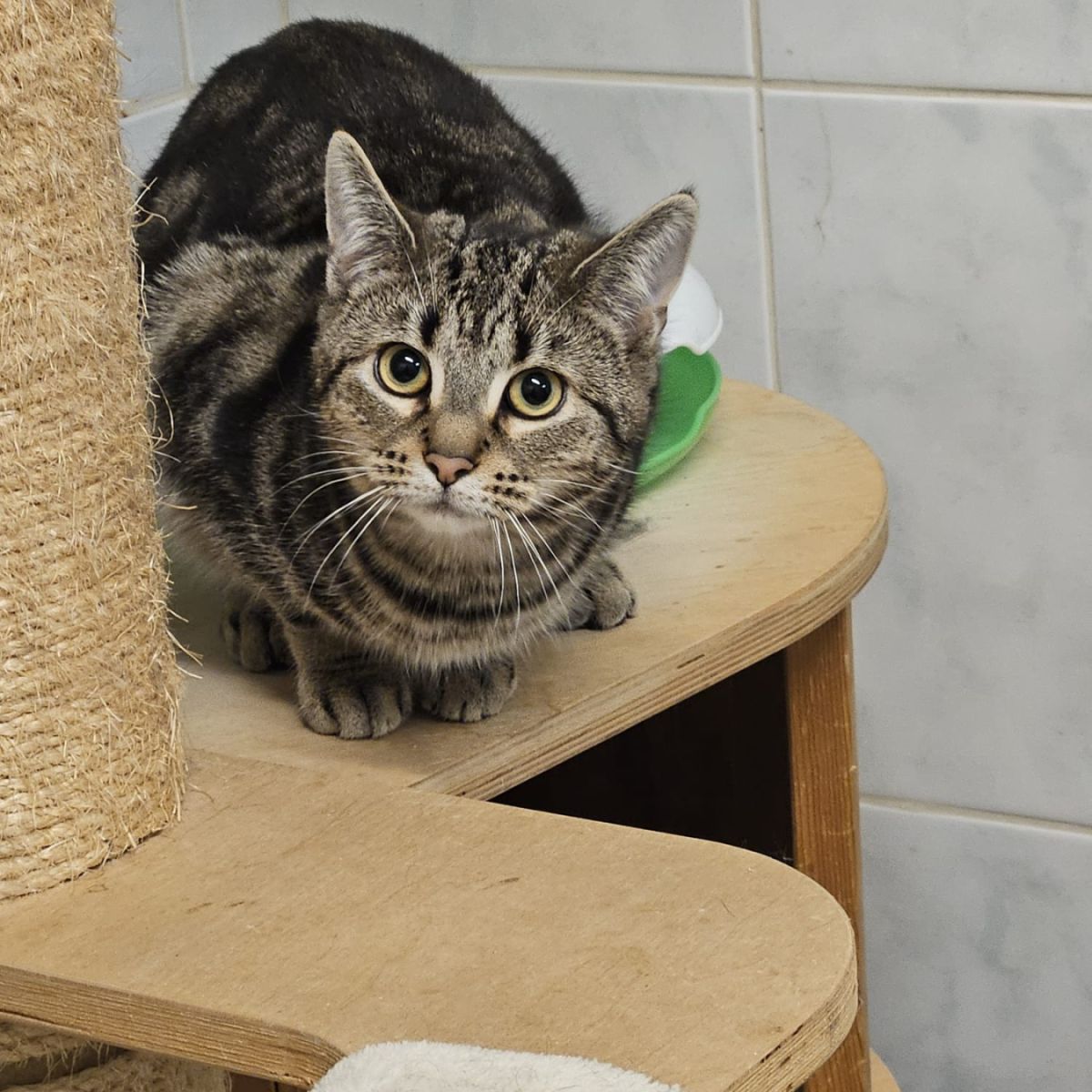 Yamero is een mooie kattin, een tijgertje. Ze is nog erg onzeker en moet nog wennen aan haar nieuwe omgeving en de mensen rondom haar.