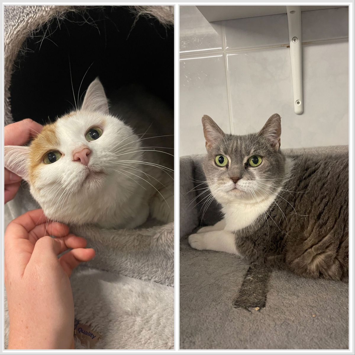 Chuppa en Zara werden bij ons afgestaan wegens een scheiding. Daarom zijn we voor hun op zoek naar een nieuw gouden mandje. In het begin zijn ze wat afwachtend en kruipen ze liever veilig weg, maar als je ze begint te kriebelen kunnen ze dat toch wel echt niet weerstaan en beginnen ze er duidelijk van te genieten. Dat poepje gaat omhoog bij de aaitjes, en meer kopjes worden gegeven. Chuppa en Zara worden enkel samen geplaatst. Ze hebben geen toegang tot buiten nodig, maar dit mag wel. Ook hebben ze beide wat veel winterreserves, dus er zal een beetje op hun lijn gelet moeten worden.