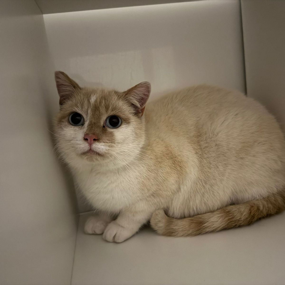 Frosti kwam samen met enkele andere katten bij ons terecht na een grote vangactie van zwerfkatten. Helaas konden de katjes niet terug naar die plek, waardoor we dus een nieuwe thuis voor hen zoeken. Een deel van de katjes is te wild en zullen boerderijkatjes worden maar in Frosti zien we potentieel!