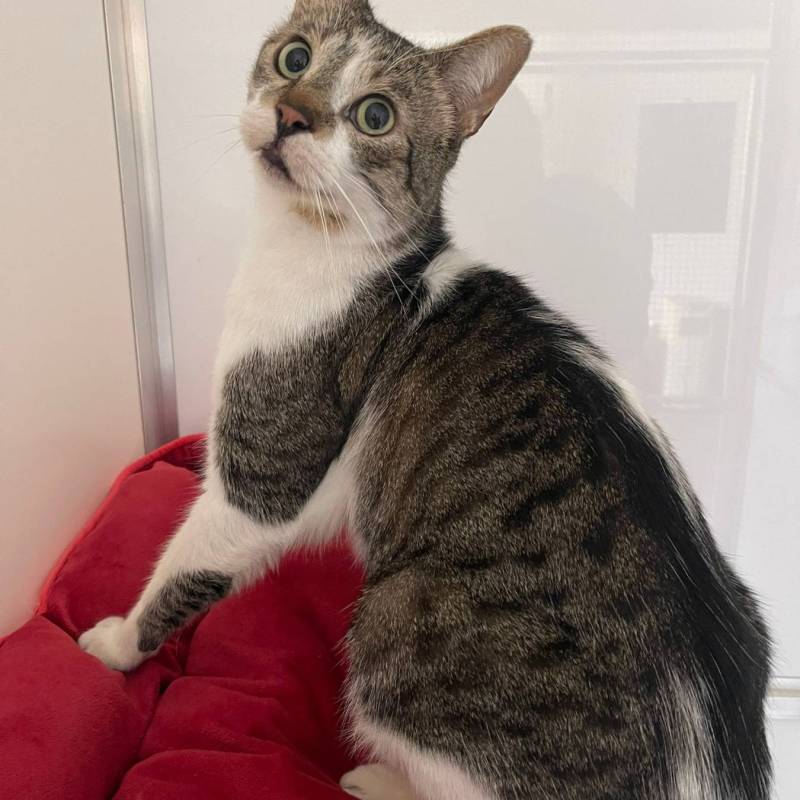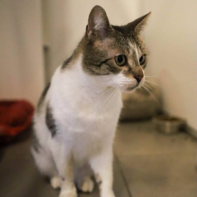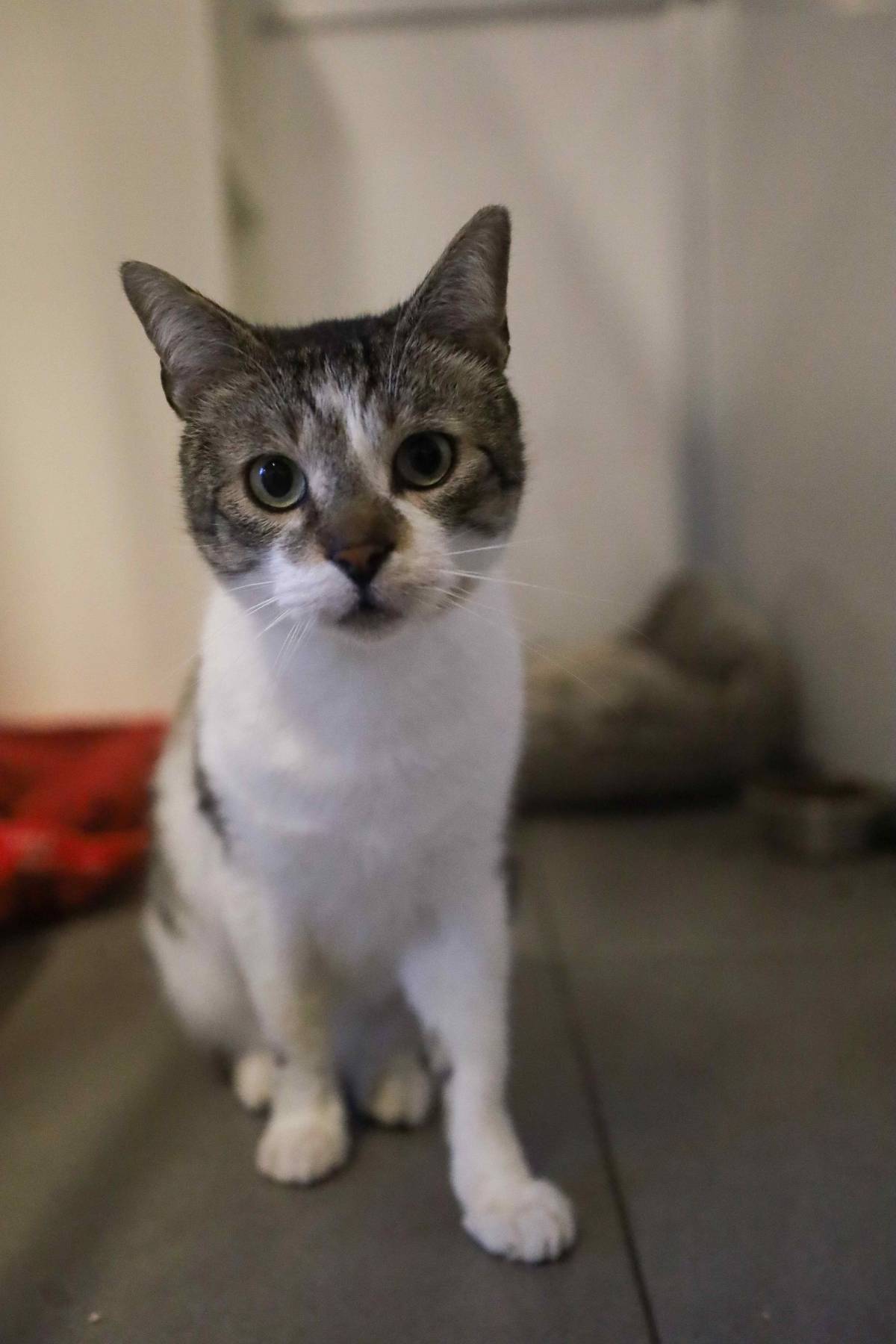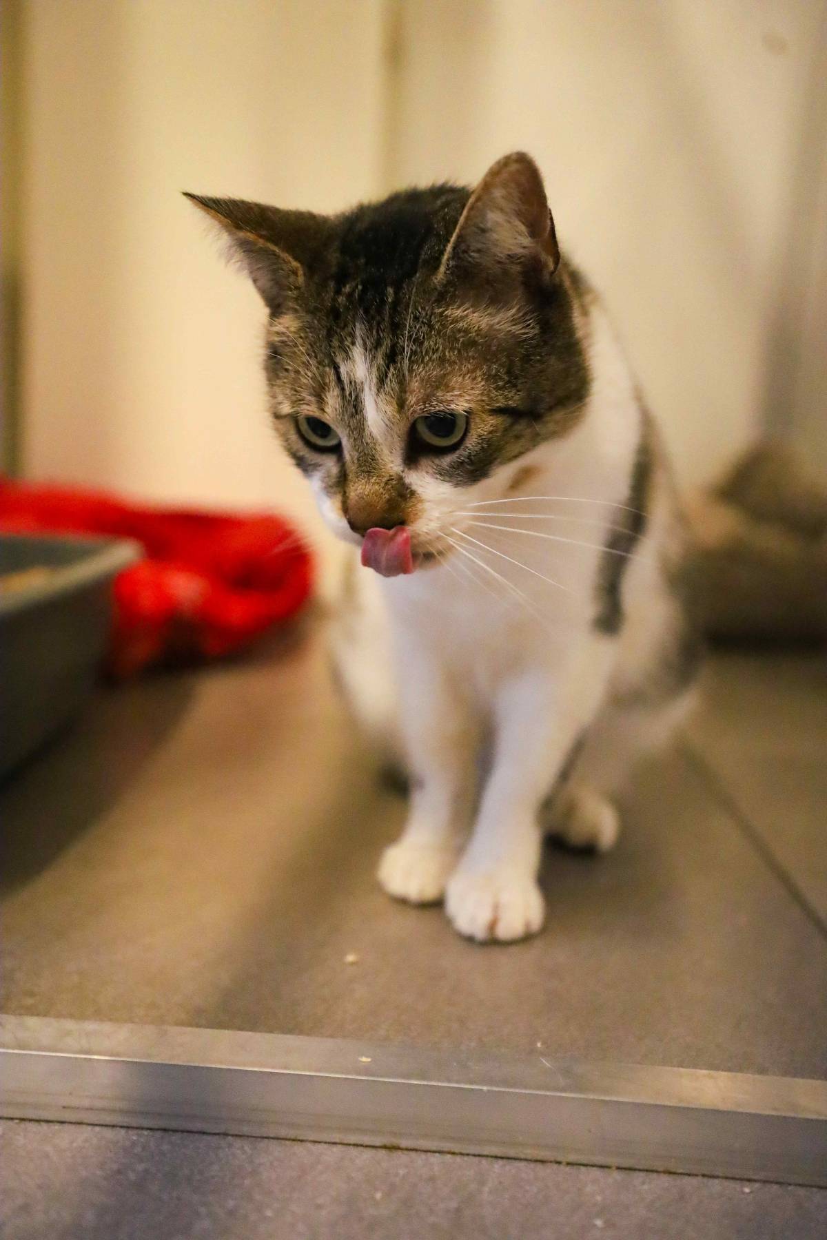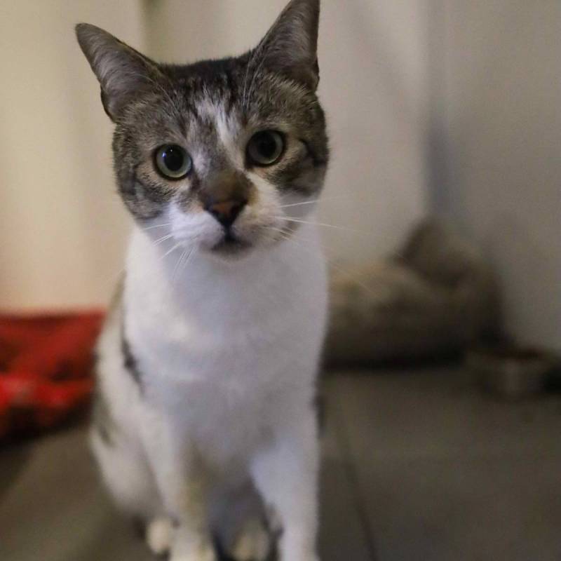 Fluppe is een rustige knuffelkater. Wanneer we zijn hokje binnen gaan, zal hij afkomen om kopjes te geven en aaitjes te vragen.